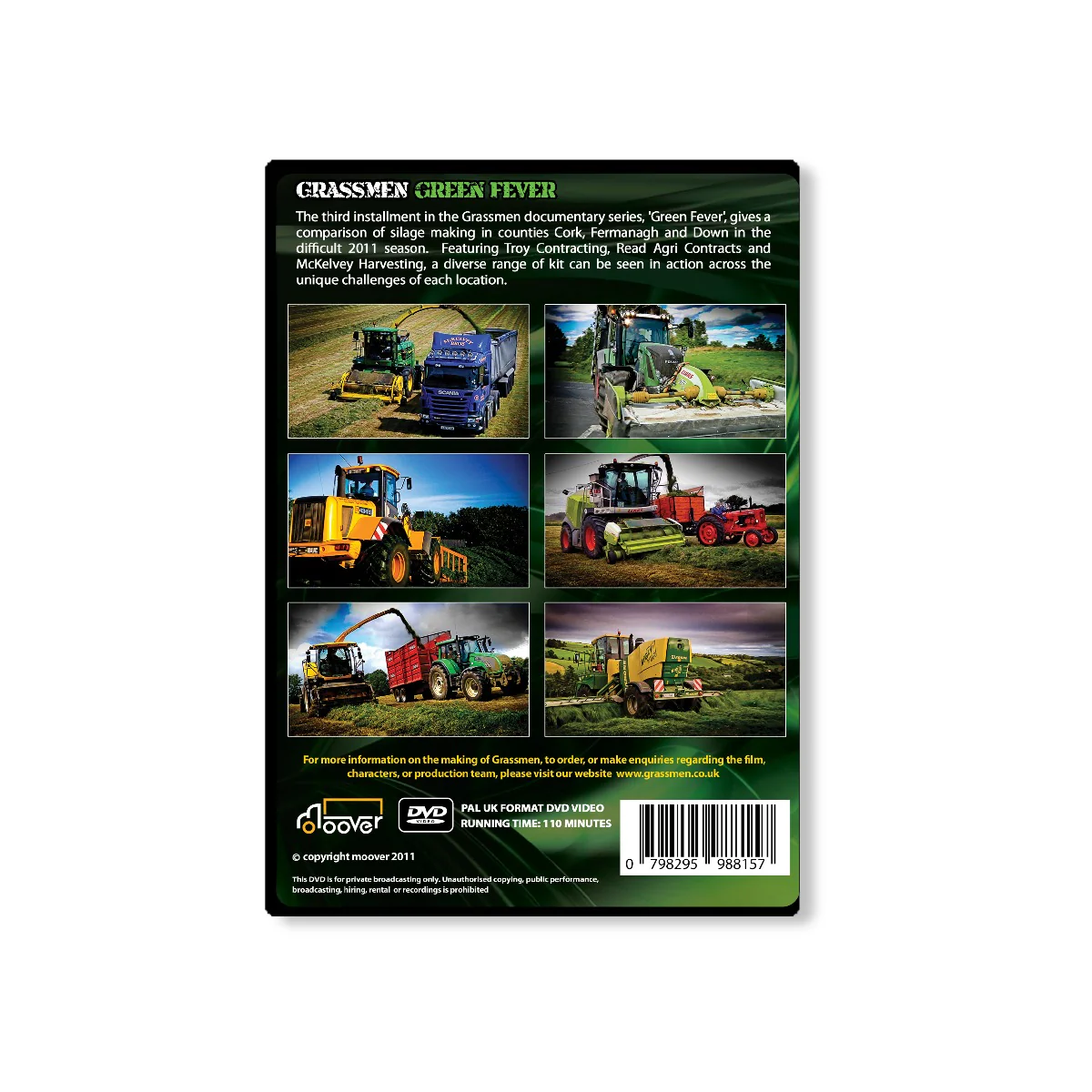 The third instalment in the "GRASSMEN" documentary series, 'Green Fever' gives a comparison of silage making in counties Cork, Fermanagh and Down in the difficult 2011 season. Featuring Troy Contracting, Read Agri Contracts and McKelvey Harvesting, a diverse range of kit can be seen in action across the unique challenges of each location.