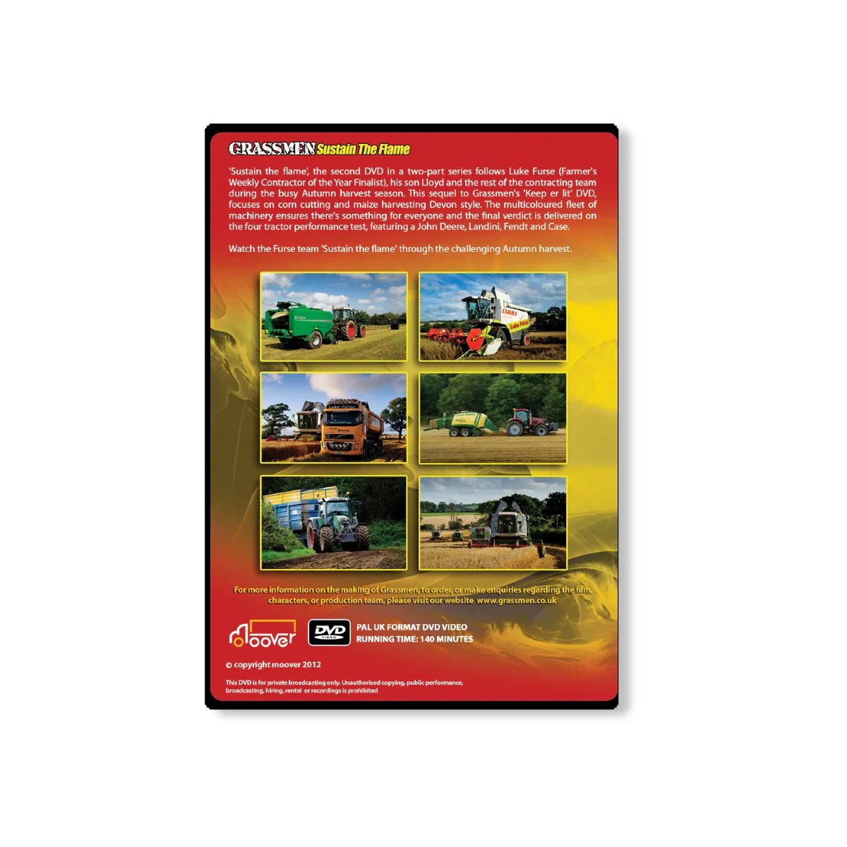 Choose from a physical or digital copy. 'Sustain the flame', the second Physical DVD in a two-part series follows Luke Furse (Farmer's Weekly Contractor of the Year Finalist), his son Lloyd and the rest of the contracting team during the busy Autumn harvest season. This sequel to "GRASSMEN"'s 'Keep er lit' Physical DVD, focuses on corn cutting and maize harvesting Devon style. The multicoloured fleet of machinery ensures there's something for everyone and the final verdict is delivered on the four tractor performance test, featuring a John Deere, Landini, Fendt and Case.